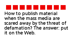 The Net cannot solve all these problems at a stroke, but it does offer the potential to get around one major obstacle: how to publish material when the mass media are scared away by the threat of defamation. The answer: put it on the Web or an e-mail list.