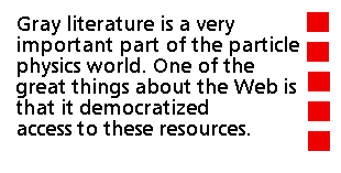 LA: Gray literature is a very important part of the particle physics world. One of the great things about the Web is that it democratized access to these resources. Before electronic communication people who were further away from population centers or technology centers were really behind. They had no way to find out quickly about research.