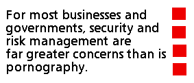 The boundaries of individual networks can be controlled to varying degrees. A common technique is to protect organizational or even national networks with "firewalls" that limit the abilities of authorized users to exit and of outsiders to enter. Some internal resources can be publicly accessible while others are restricted to internal use, for example. Similarly, firewalls and filtering techniques can be used to limit external sites that can be reached. Parents can limit their children's ability to connect to sites known to contain pornography or other undesirable material. The definition of "undesirable" varies by context. Companies can limit access to known sites containing games. Countries can limit access to sites known to provide undesirable political views. China, for example, currently attempts to control access to sites outside the country through a single gateway, so that specific sites deemed objectionable can be blocked. Chinese Internet users are required to register with the police to gain access to the network (Tan, Mueller, and Foster, 1997). A key phrase here is "known sites." As the Internet proliferates, new sites appear daily, and sites change names, location, and content frequently. Reliable filtering software that can distinguish between acceptable and unacceptable materials is not yet feasible, and may never be.