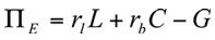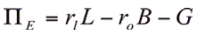 is the first derivative of profits with respect to the amount of e-money issued (E), L are loans (or other long-term investments), r1 is the interest rate on loans, C is structural money market lending, rb is the bid rate in the money market, B is structural money market borrowing, ro is the money market offer rate and G is a composite cost-term (including asset management costs, solvency cost, cost of capital for investment into e-money issuing and other costs).