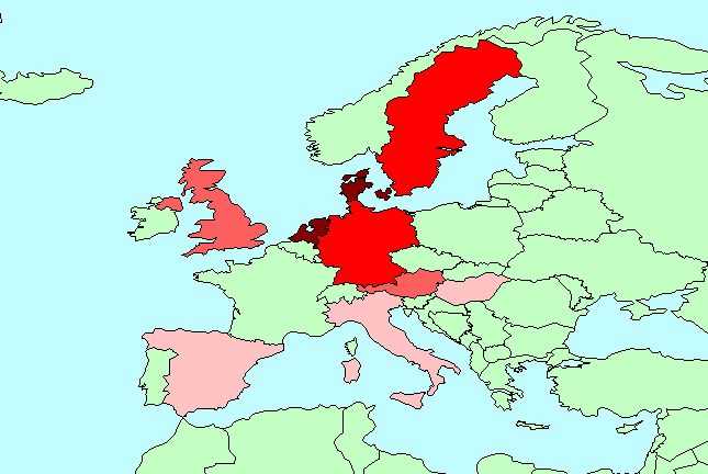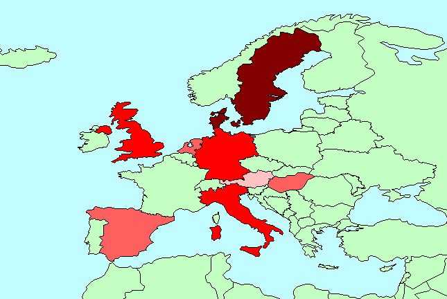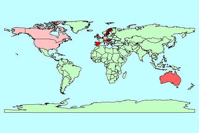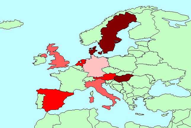 And our findings are remarkable. The United States consistently drops to a position of relatively inactive development - a very puzzling discovery. The Northern European social democracies hold their position at the head of the list, and appear to be undertaking a completely disproportionate amount of actual work. Countries in Southern Europe rank only slightly above the United States, while Mexico, Canada and the United Kingdom are positioned near the presumed mean. In traditional economic lingo, the United States appears to be free riding on a collective good provided predominantly by non-Americans. The stark nature of this contrast is a devastating blow to arguments about post-scarcity "gift cultures". If the wealthiest country in the world is one of the least active (relative) contributors to open source development, it seems ludicrous to explain said development as a function of post-materialism.