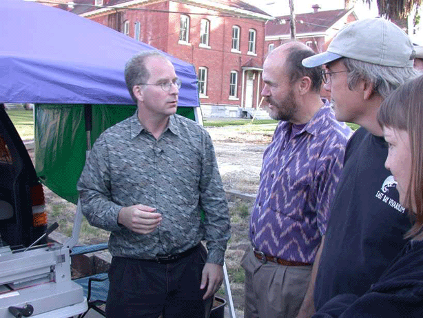 (photo by Michael Ward of Hidden Knowledge).Kahle wants to attract attention to the effort to build a collection of books, and by ending up in Washington, D.C. during the Eldred v. Ashcroft hearing at the Supreme Court, he can supply a very visual spectacle for the media who have a hard time showing any news when the battle is over intellectual property. Kahle plans to park in front of the court building, set up his press and bindery and give away books to those in the vicinity. I expect he will be hassled by Capitol Hill police, if he can even drive a van near the building.