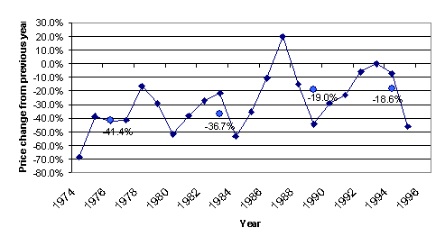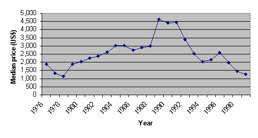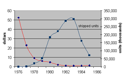Figure 1: Prices and Quantities of 16-kilobit DRAM chips.