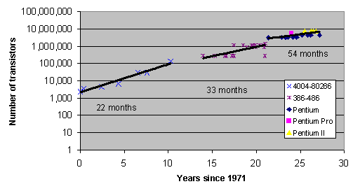 Figure 3: Number of transistors on Intel microprocessors.