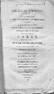 Figure 1: The cover page from Amelia Simmons, American Cookery (1798).