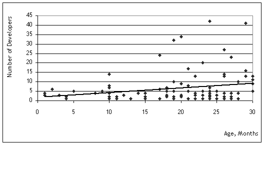 Figure 4: Age of Project vs. Number of Developers