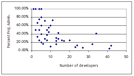 Figure 5: Percent of Project Administrators vs. Total Number of Developers