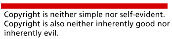 Copyright is also neither inherently good nor inherently evil. But even the most casual observer can see that something is wrong with copyright. Today’s copyright laws and traditions are dissonant with modern culture and technology, and the dissonance has become more and more apparent in the past few years. If we want to adapt copyright to our modern world if we want to protect the good aspects of copyright we need to do more than repeat slogans about fairness and protecting authors. We need to learn something of copyright’s nature in order to understand how to solve its problems.