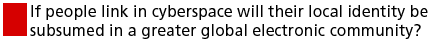 Technological predictions during 2002 seemed to point towards increasing linguistic diversity on the Internet, in that there will be many more language blocks than American English, but at the same time the homogenisation of the Internet may well exacerbate the loss of the absolute numbers of languages, a concern that is stimulating the archiving of languages (Mayfield, 2002). As with the predicted loss of linguistic diversity, some predictions have argued that geography itself will diminish as ICTs and the Internet 'kill' distance by bringing people together online. It is difficult to see such a trend, in the same way that earlier technologies did, such as the electronic telegraph in the nineteenth century (Standage, 1998). Spatially grounded communities and localities did not disappear, and are not expected to disappear in the era of the Internet [ 37], although they did (as they have always in the past) change, and "local sensibilities retain validity and global communication forms can be used to feed and elaborate these sensibilities" [38].