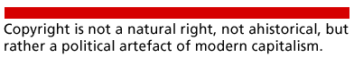 At least part of the problem for copyright as regards the new technologies that the move to digitalisation has unleashed, is that while in the past (at least at the individual level) copyright law has been "honoured in the breach," DRM technologies represent an attempt to get all users to adopt a more stringent legal protection for owners’ rights. Such protection is both more stringent than previously legislated, and (perhaps more importantly) much more robust than normal, everyday users of content, had ever really understood copyright law to encompass [ 50]. The grey area between private rights and public/social use has been eroded, and there has been a very real move to further privilege owners’ rights which has now made the previously arcane issues around copyright of much more direct social impact. This is not an issue of technical realignment, but rather a political issue of some importance. Copyright is not a natural right, not ahistorical, but rather a political artefact of modern capitalism. As such, while we might be happy to recognise the rights of owners in many circumstances, these interest should never be immune from political or democratic deliberation.