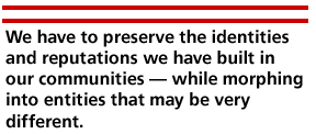We have to preserve the identities and reputations we have built in our communities while morphing into entities that may be very different.