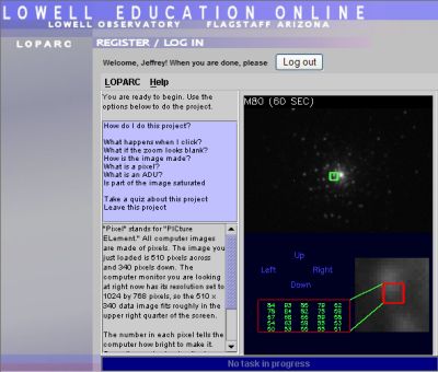 The Lowell Observatory Public Astronomical Research Center (LOPARC) is an Internet observatory that allows users to access a research-grade telescope, an online digital archive of astronomical images, and server-side software that many professional astronomers use in their research. Online activities are available at a variety of conceptual levels, allowing anyone from primary school students to adults to use the facility with appropriate content. Two versions of the user interface allow clients to be deployed for general home or private-venue access, as well as in a more restricted point-and-click mode in public venues such as museums and public libraries. The facility is currently open in its initial public release at Lowell Observatory's campus in Flagstaff, Arizona, and is slated for full Internet availability by September, 2003.Contents