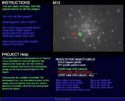 Goal 2: Multiple avenues of access. The online activities must be accessible in a variety of ways. Casual users should be able to find guided, step-by-step projects that illustrate basic concepts in astronomy and image processing, while more advanced users should find more challenging presentations of the concepts, as well as freer, less strictly-guided exploration of the data. Children and adults alike should be able to find accessible descriptions of the images and concepts.