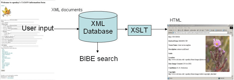 The search facilities of BIBE/OpenKey are already being used in schools. In October 2002, over fifty teachers were trained of how to create species description pages and make digital images in the Illinois Schools' Flora and Fauna Online Project ( http://www.siue.edu/OSME/river/). Hundreds of students have participated in creating plant species descriptions and placed them on the Web. The BIBE spider has indexed these descriptions and made them available through one search site using the BIBE visualization. The goal of this project is to create multiple species descriptions for all grade levels of all plant (and spiders) in Illinois ... and then the world.
