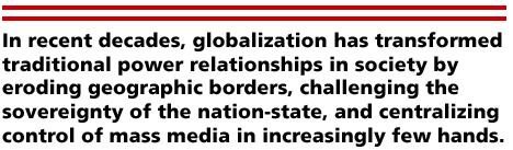 In recent decades, globalization has transformed traditional power relationships in society by eroding geographic borders, challenging the sovereignty of the nation-state, and centralizing control of mass media in increasingly few hands. Most of these changes have been driven by commercial interests, with little consideration given to their effect on democracy. The democratic institutions we have were not conceived to work under such conditions, and are straining under new pressures. There is a growing risk that citizens will become alienated from the process of democratic governance, and feel ill equipped to challenge global elites and corporate interests in areas such as the environment, poverty, health, or sustainable development. Might a "next generation Internet" help to reinvigorate democracy by providing a platform that makes it easier for citizens to inform themselves about public policy debates, self-organize, and participate in the process of governance?