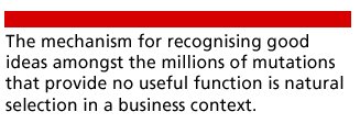 Most mutations are small scale, resulting in gradual evolution. Occasionally, an 'entrepreneurial idea' comes along a large scale mutation and this results in a sudden and complete change of direction that changes the way people think and operate. In order to create an environment in which entrepreneurial ideas flourish, we need both the stable environment of progressive evolution as well as the openness to recognise the potential of novel ideas when they appear. The Connecticon is fundamental to understanding the survival of entrepreneurial ideas. The emergent properties of fast speed, complex data exchange throughout the network are matched by the properties of the human resource to provide the mutation and to interpret the good ideas. The mechanism for recognising good ideas amongst the millions of mutations that provide no useful function is natural selection in a business context.