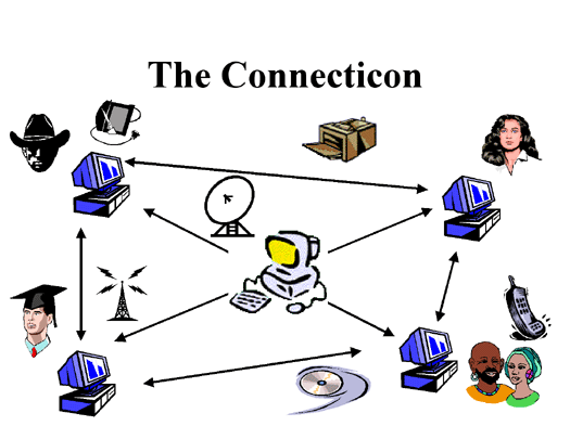 This brings us on to the second layer of the Connecticon, which is the human resource located at the end of each terminal and node in this physical network. Many nodes have more than a single user, but even single users are enormously complicated repositories of knowledge, culture, behaviour, and potential links to other value systems. This vast human resource, added to the physical network of cyberspace is a source for learning and innovation of gigantic proportions, even and possibly because of its unstructured state. Networks are ideal for the replication of ideas, and the introduction of the human role in the interpretation and communication of data adds a rich complexity, given that even the most ardent users of the Internet do not live all their lives through the Web, nor leave behind their memories, reactions, and understanding of real world experiences when they go online.