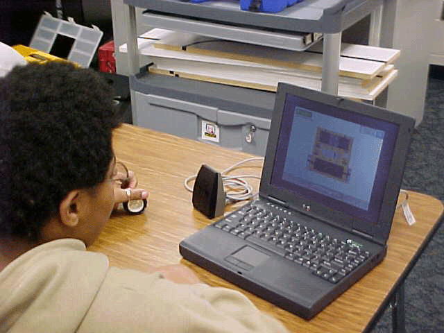 There are currently four robot enthusiasts in the Baldwin after-school program Jessica, Kimberlyn, Phillip, and Sarah. They meet with Diane every Tuesday and Thursday to design, build, and operate robots. They use LEGO Mindstorms robot kits, a commercial version of the construction materials that Seymour Papert (1993) gave children over a decade ago. The kits have an autonomous microcomputer that can be programmed with a PC. The kits also have LEGO bricks, motors, gears, and sensors.