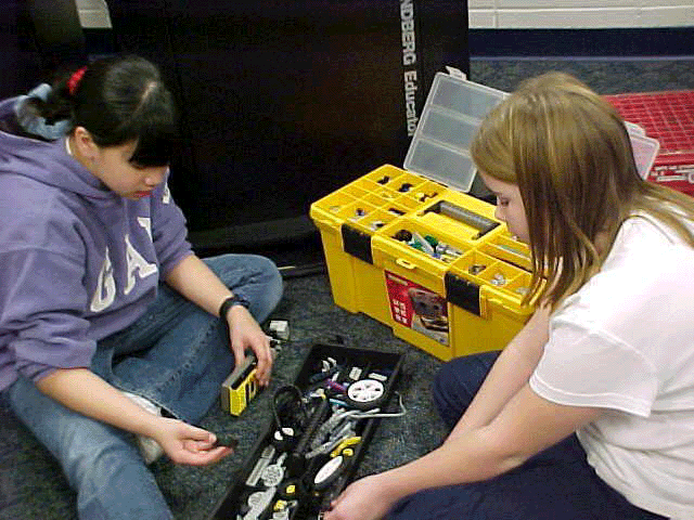 Consider another photograph and its caption. Figure 2 shows Kimberlyn and Jessica searching for a particular part for their robot.