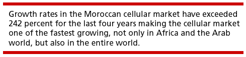 Growth rates in the Moroccan cellular market have exceeded 242 percent for the last four years making the cellular market one of the fastest growing, not only in Africa and the Arab world, but also in the entire world. As the head of the Arab regional office of the International Telecommunications Union, Ibrahim Kadi, put it "the Moroccan experience has become a landmark for all other countries to follow" [ 4].