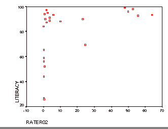 Figure 1: Correlation of literacy and Internet penetration for 2002.
