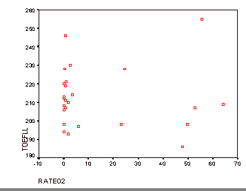 Figure 2: Scatter plot of the relationship between TOEFL test scores and Internet penetration.