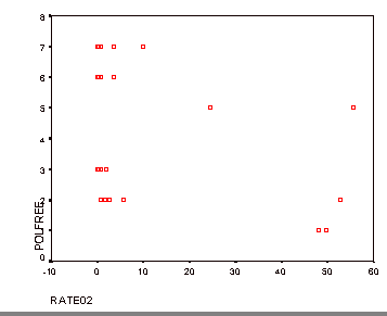 Variable Rate 1995 Rate 1998 Rate 2000 Rate 2002 GDP per capita .86** .91** .92** .92** Literacy .36 .40 .45* .45* Urbanization .74** .81** .82** .83** English level .19 .17 -.02 -.13 Telecom .84** .93** .95** .97** Political freedom -.15 -.22 -.38 -.38 Political stability .63** .64** .62** .61**
