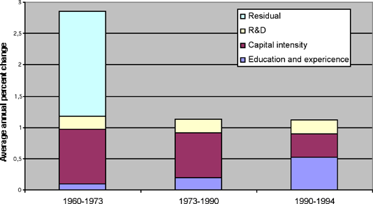 Figure 1: Sources of labor productivity growth in the U.S., 19601994. [20]