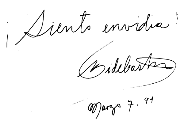 Figure 3: Fidel Castro’s autograph (reading "I envy you") at the Havana YCC.