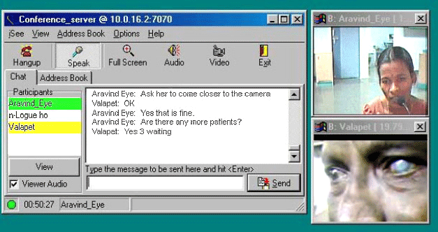 Figure 1: A lowcost Web cam and simple video conferencing software are used in medical diagnosis.
