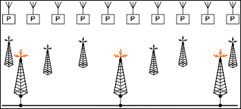 The radios, towers and antennae really cannot be considered until the backbone architecture is designed. One possibility is to view the fiber backbone as a bus with wireless feeds, implying three classes of radio/antenna: those interfacing directly with the fiber bus, those in the villages, and intermediate radios (Figure 5).