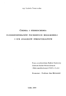 Tytuł: Chemia i stereochemia fluorofosforanów pochodnych bioalkoholi i ich analogów strukturalnych