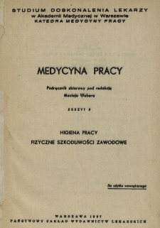 W: Medycyna pracy. Podr. zbior. pod red. M. Webera. Warszawa: PZWL 1967 z.3 s.7-23