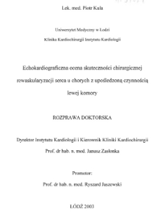 Title: Echokardiograficzna ocena skuteczności chirurgicznej rewaskularyzacji serca u chorych z upośledzoną czynnością lewej komory