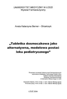 | Berner-Strzelczyk, Aneta Katarzyna, 2004, "Tabletka dosmoczkowa jako alternatywna, modelowa postać leku pediatrycznego" | Sep 17, 2021 |