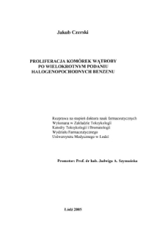 | Czerski, Jakub, 2005, Proliferacja komórek wątroby po wielokrotnym podaniu halogenopochodnych benzenu | Sep 20, 2021 |
