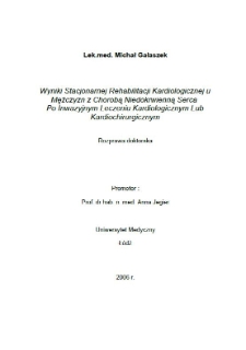 Tytuł: Wyniki stacjonarnej rehabilitacji kardiologicznej u mężczyzn z chorobą niedokrwienną serca po inwazyjnym leczeniu kardiologicznym lub kardiochirurgicznym