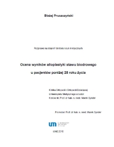| Pruszczyński, Błażej, 2010, Ocena wyników alloplastyki stawu biodrowego u pacjentów poniżej 28 roku życia | Oct 12, 2021 |
