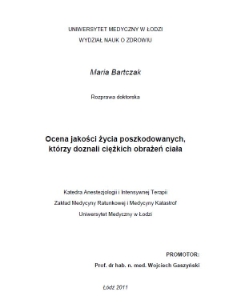| Bartczak, Maria, 2011, Ocena jakości życia poszkodowanych, którzy doznali ciężkich obrażeń ciała | 2021-10-19 |