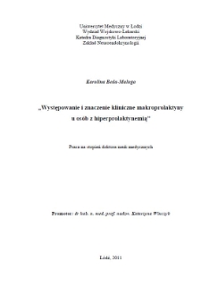 | Beda-Maluga, Karolina, 2011, Występowanie i znaczenie kliniczne makroprolaktyny u osób z hiperprolaktynemią | 2021-10-22 |