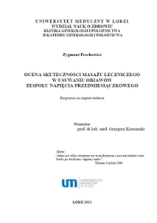 | Prochowicz, Zygmunt, 2013, Ocena skuteczności masażu leczniczego w usuwaniu objawów zespołu napiecia przedmiesiączkowego | 2021-10-25 |