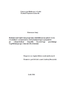 Title: Badania nad wpływem programu rehabilitacji na jakość życia i wydolność czynnościową stawu kolanowego u pacjentów po rekonstrukcji wiązadła krzyżowego przedniego współistniejącego z innymi obrażeniami