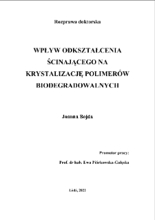 | Bojda, Joanna, 2022, Wpływ odkształcenia na krystalizację polimerów biodegradowalnych | Nov 17, 2022 |