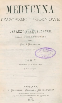 Tytuł: Medycyna ; Medycyna : czasopismo tygodniowe dla lekarzy praktycznych 1877, T. V