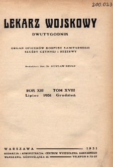 Title: Lekarz wojskowy: dwutygodnik organ oficerów korpusu sanitarnego sł. czynnej i rezerwy 1931, R. XIII, T. XVIII