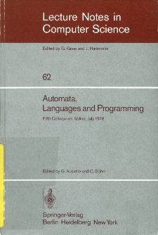publishing series: "Lecture Notes in Computer Science" No. 62, edited by G. Ausiello and C. Bohm ; ICALP conference materials: Fifth Colloquium, Udine, Italy, July 17-21, 1978 ; editorial board: P. Brinch Hansen, D. Gries, C. Moler, G. Seegmuller, J. Stoer, N. Wirth